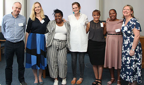 Insetsel-onderskrif: Prof Mark Tomlinson, Marguerite Marlow, Vuyolwethu Notholi, dr Sarah Skeen, Zena Jacobs, Zanele Siqabatiso en Jackie Stewart.
