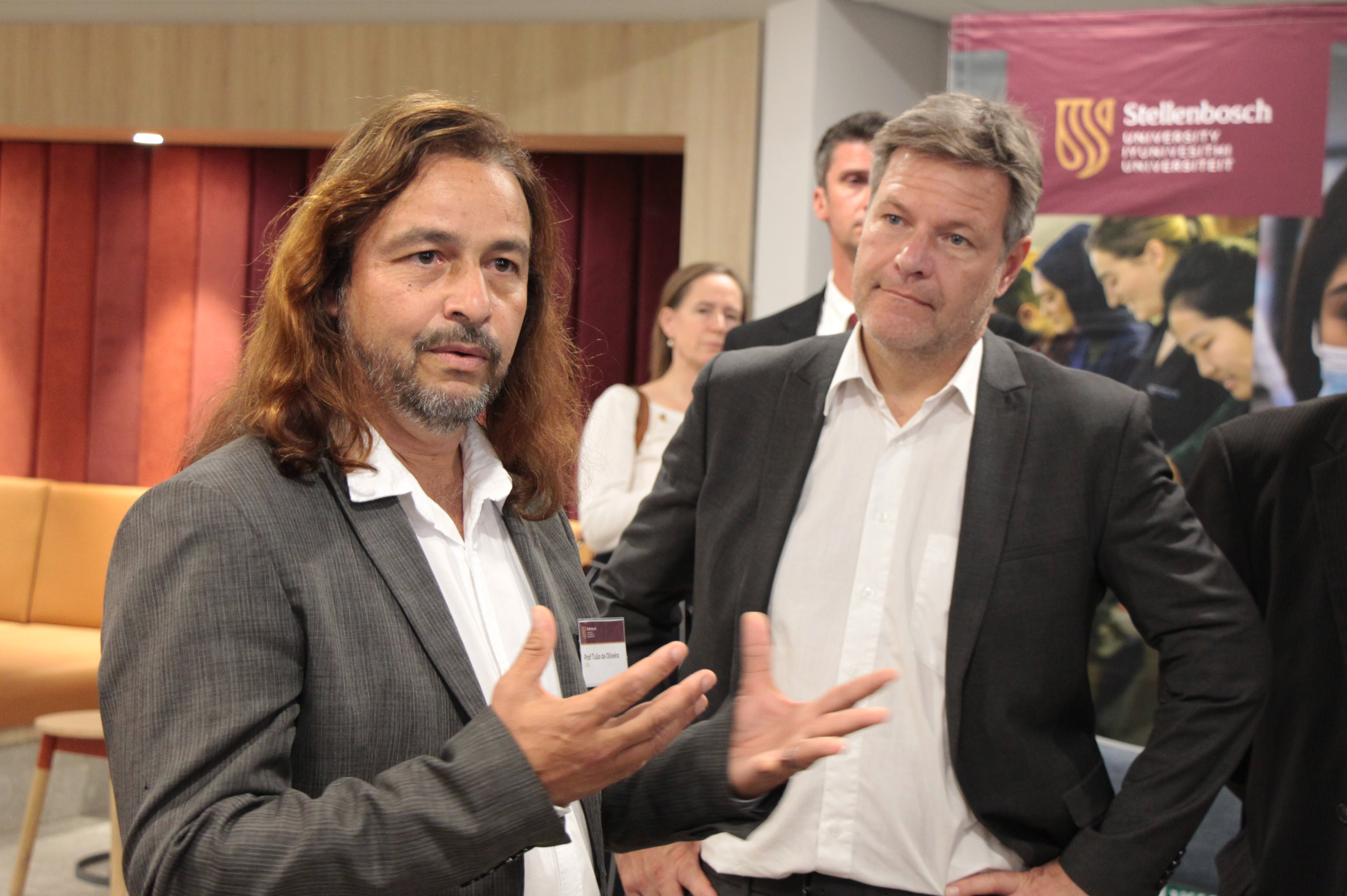 “Ek is hoogs beïndruk," het die Duitse vise-kanselier, dr Robert Habeck, gesê na ʼn blitstoer van die BMNR-fasiliteit en gesprekke met ondermeer die US se top bio-informatikus, prof Tulio de Oliveira, oor belangrike navorsing wat die US doen met betrekking tot die globale epidemiese response.