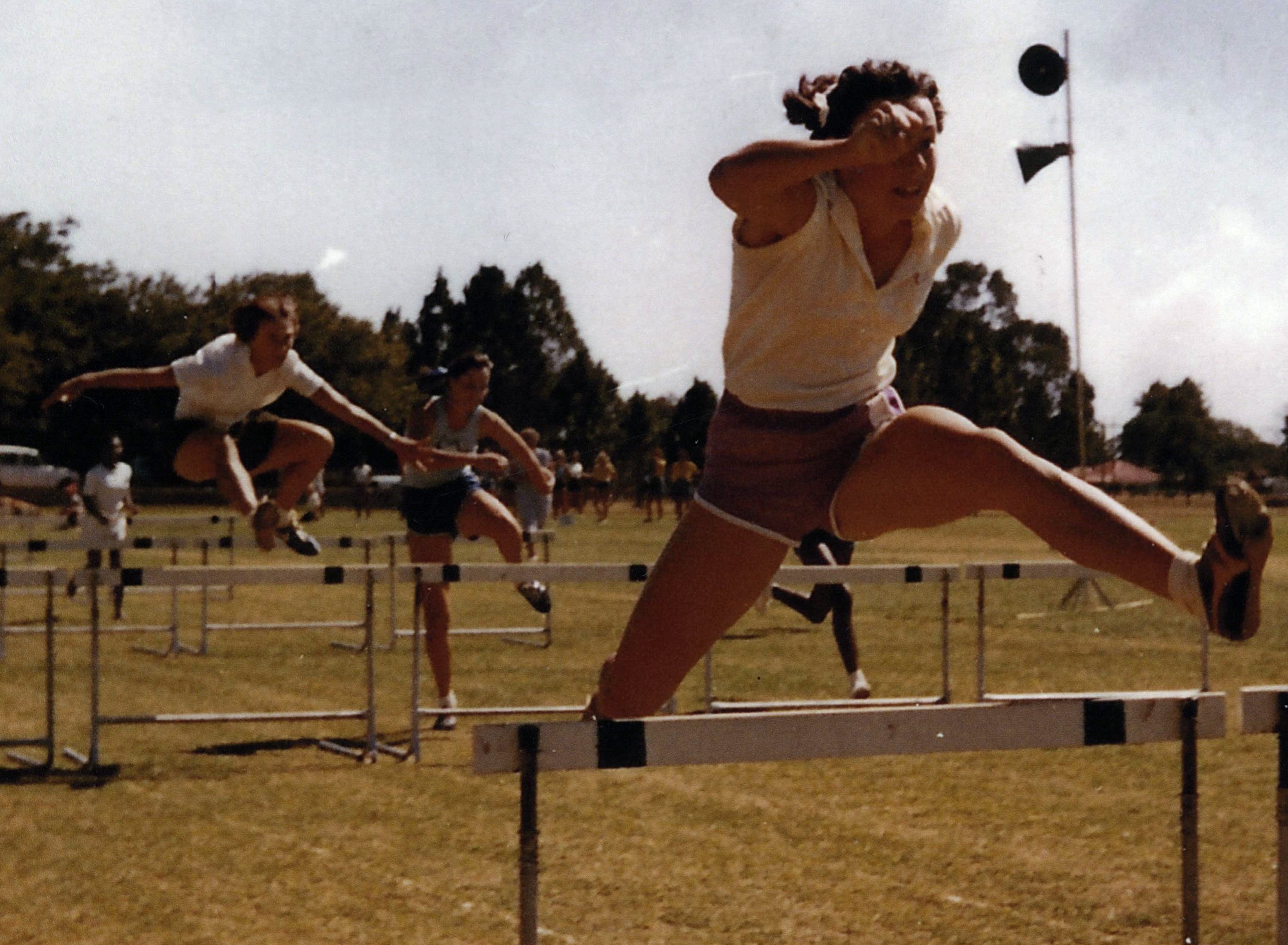 Photo 1: Bettie Harmsen, born Buitendag, in action on the athletics track.