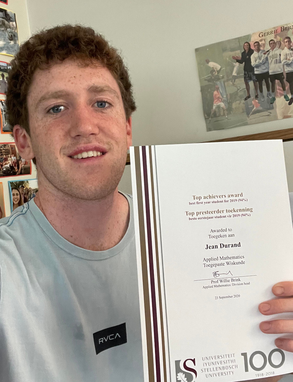 - Top 3rd year: Fred de Villiers (90.25%)