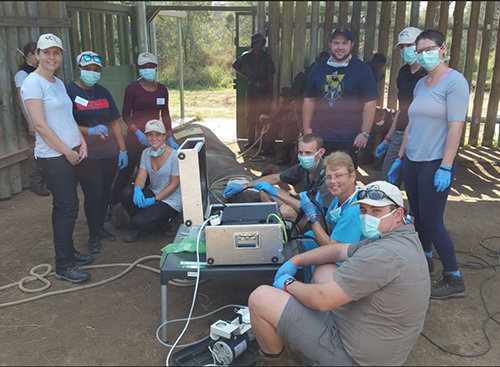 It had been a long day, so everyone enjoyed a quick dinner and went to bed early to prepare for the next day. Wednesday's procedures were performed on four rhinos that are housed in bomas as part of the TB project. The students got some great hands-on experience with regards to the collection of samples such as blood and BALs. This also helped the students get a better understanding of what impact their research had on real-life situations when it came to testing various species for bovine tuberculosis.