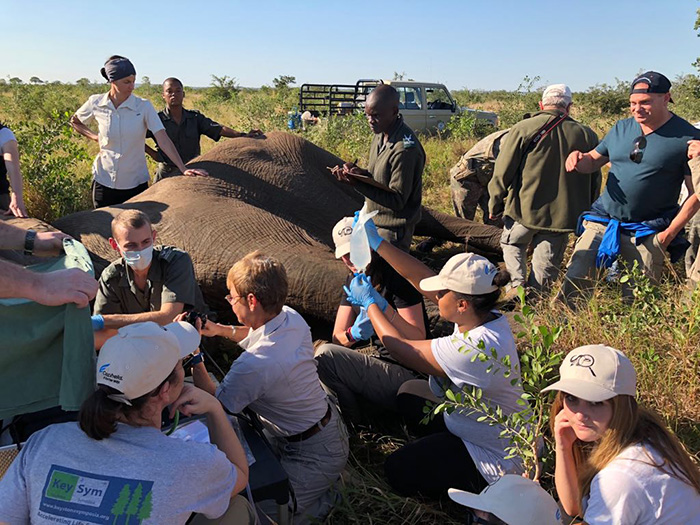 But the day was far from over, as, upon return to base camp, a sudden opportunity presented itself to do a full elephant post-mortem examination on another elephant. The team made its way to the field site. This was also a great learning experience with trained veterinarians at hand to explain and answer all the questions the students had.
