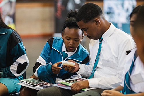 On Day One of the programme, learners were divided into groups of 10 and moved to five different stations. At each one they could learn more about specific aspects relating to TB, such as how it spreads, how it can be prevented, its signs and symptoms, diagnosis and treatment, as well as more about the myths surrounding this disease. Learners received information packs and comics, as well as merchandise donated by the South African Medical Research Council.