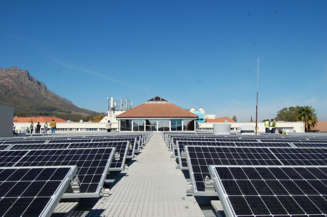 PV was already commissioned on the Decanting building (100 kWp) and the Knowledge Centre (80 kWp), totalling to existing system to 500 kWp installed for Stellenbosch campus.